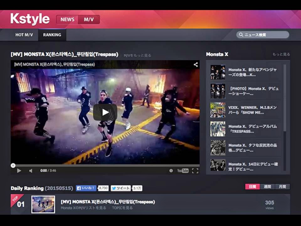 Rookie MONSTA X caught the heart of KPop fanatics immediately as they topped the online music video chart 'Kstyle.'