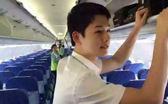 Netizens are in frenzy over a Chinese male flight attendant who they claim to be Song Joong Ji's look alike. The photo of the cabin crew named Feng Ming is now becoming viral especially in Weibo and among Chinese community sites. They also find out that Feng Min is only 24 years old.