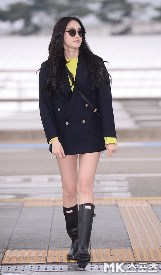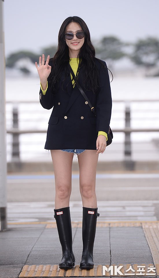 She garners much attention with her unique airport fashion though. Dropping jaws with her absolutely short pants and rain boots. Some netizens commented, 'is she going to work on a farm?','Rain boots?', 'put some pants on' and etc. What do you think?