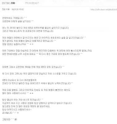 [NEWS] 100125 BEAST GiKwang's post on Daum