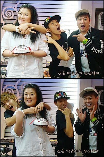 On the broadcast Woohyun did not get the correct answer for the quiz and was chose to recieve a penalty(?) which was to give Lee Gookju a back hug. In the end when the radio broadcast was over he was on her back and later poked his head out showing a cute pose.