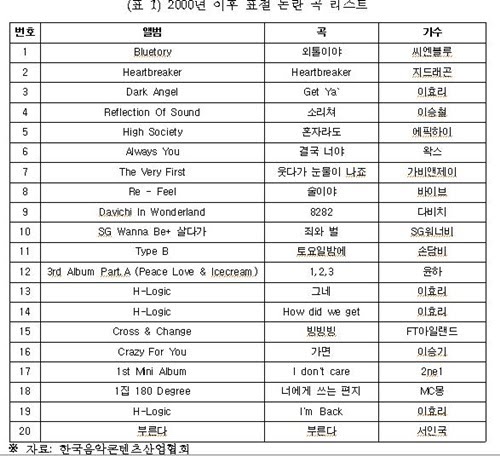A total of 20 songs have been swept up in legitimate plagiarism controversies since 2000, and it has recently been revealed by the Committee on Culture, Sports, Tourism, Broadcasting & Communications that the royalties earned by these songs total to $1,724,138 USD.