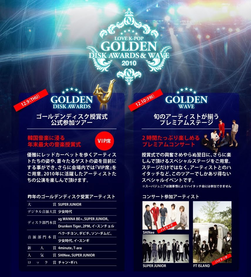 The celebration after the award, called Golden Wave will be held on December 10th and SHINee, Super Junior and FT Island will attend this party.