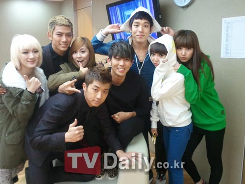 On the 28th of October, Seulong released the above picture via his Twitter account, writing "This is our new mixed group", featuring 2AM's OngSeul and Changmin, 2PM's Wooyoung and Taecyeon, and all four of missA's members in the same photo, looking very amicable [with each other].