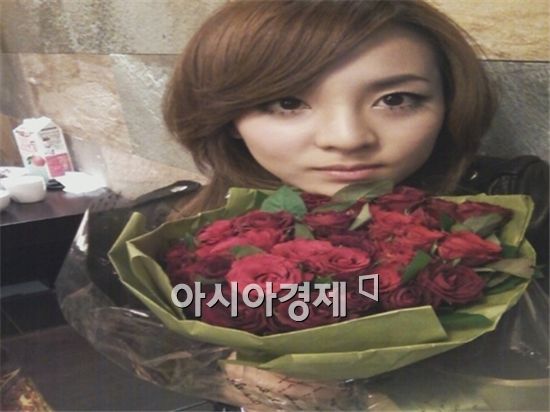 She updated her me2day on the night of the 24th and it has captured the attention of netizens because of the picture she uploaded of her with a bouquet of red roses also showing her beauty.