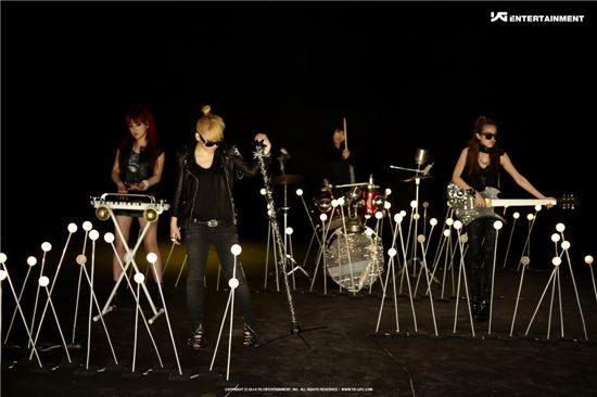 The photos showed the members of 2NE1 as a band, playing various musical instruments including drums, keyboard and guitar.