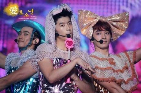 2PM members ChanSung, TaecYeon and WooYoung transformed as Orange Caramel for their first independent concert.