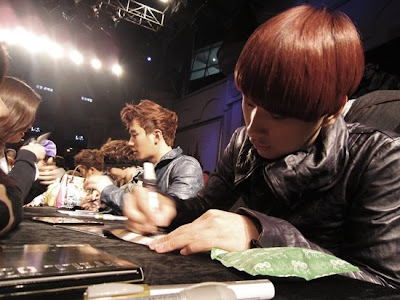 2pm members carefully signed the albums and shook the hands of their fans. The event was also to celebrate their win on the music shows and also to thank their fans who supported them.