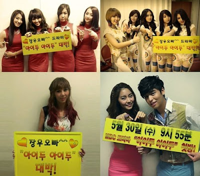 On June 1st, 2012, an Internet forum published a few photos of many singers cheering the new MBC Wednesday and Thursday drama series “I Do I Do” starring Lee Jang Woo that premiered on May 30th, 2012.