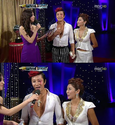 When MC Kim Kyuri asked him where he got the idea to do his hair red, he compared himself to G-Dragon. His confidence when speaking of how he thought this hairstyle suited him well gave the audience a big laughter.