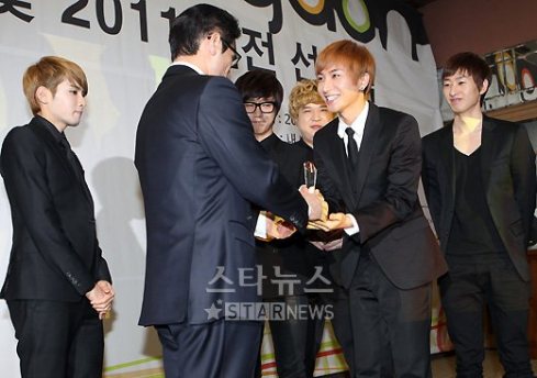 On the day’s ceremony, in addition to revealing the year 2010’s on-offline album sales, awards were given out to the singers who had clinched first place in the key areas of digital sales and album sales. Aside from Super Junior, Miss A came in first for the digital album awards, Kim Seungyoon and G.Na won the Best Male and Female Newcomer Awards respectively, and Lee Seungchul came in first for Mobile Downloads.