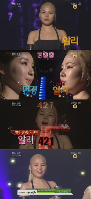 Ali wins this week's championship in KBS "Immortal Song 2" once again and this time for the 5th time. On the 3rd of March episode broadcast of KBS "Immortal Song" Ali received a total score of 421 votes making her the winner for this week again.