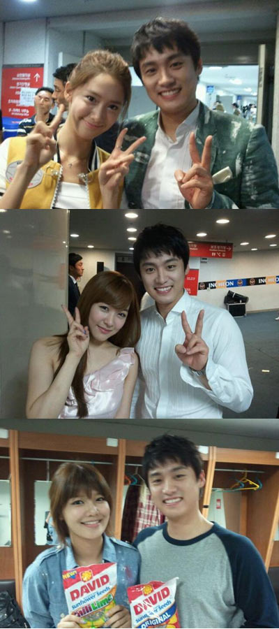 Announcer Oh Sang Jin uploaded photos of him taken with Tiffany, Yoona and Sooyoung of SNSD.