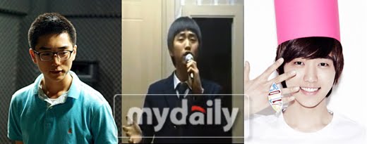Sandeul, who has transformed into a pretty boy appearance, had short hair and wore thick glasses. Another picture was of Sandeul in a school uniform with messy hair and was chubbier than his present appearance.
