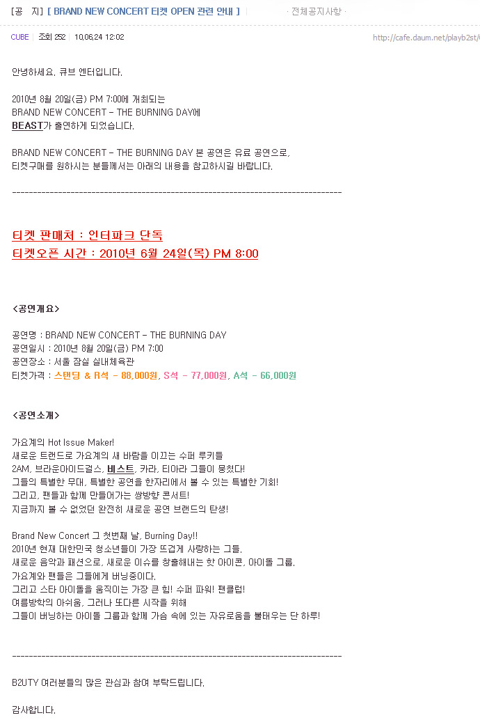 Ticket Opening Time: June 24, 2010 (Thursday) at 8:00 PMPerformance Name: BRAND NEW CONCERT - THE BURNING DAY