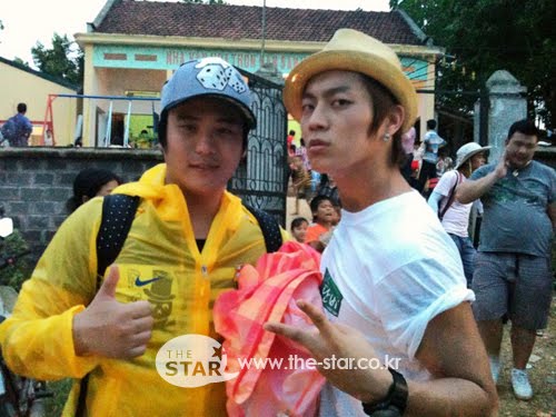 Shortly after, he left a post saying "Here's the picture!!^^" along with a picture that he had shot of him and SG Wannabe's member Kim Yongjun, flashing a V-sign.