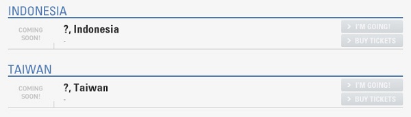 In addition to the initial list revealed yesterday which confirmed tour stops in the Philippines and Malaysia, Big Bang has just updated the list with new tour locations. According to Big Bang’s official Facebook, ‘Alive Tour 2012’ will make its visit on Indonesia and Taiwan.