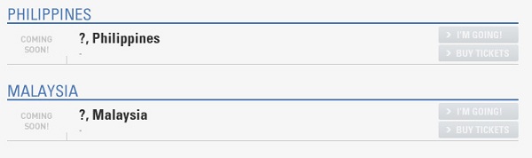 Earlier today, Big Bang released an initial list and schedule for the confirmed stops of ongoing ‘2012 Big Bang ALIVE TOUR’ through official Facebook page. According to the list, the tour will be making its stop in the Philippines and Malaysia.