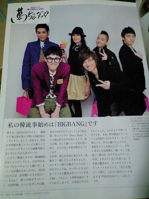 Two years before, when Big Bang came to Japan, I was able to dine with them. After the concert, they were starving. They munched down on what they ordered, and while they suited their turtledove-like appearance with their digging, "Kyun!" my maternal instinct was unfortunately tickled. When they spoke in broken Japanese, this was once again cute, don't you think? Well, everyone's feeling towards Korean Wave stars changes too. Afterall, they were really kind. They gave great importance to their family and they went together with their parents to Japan. Also, I heard they went to the onsen (Japanese hot spring) together. This time, after an interval of two years since I met them, from the turtledoves of two years ago, they were completely sophisticated and they gave off the feeling of grown up men. From now on my heart is more than ever filled with Big Bang!
