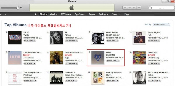 [News] Big Bang's "Alive" hits #7 on iTunes Album Chart