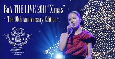According to an update on January 10th on BoA's Official Japanese website, BoA is set to release her annual Christmas concert on March 7th, 2012. The DVD, tentatively titled "BoA THE LIVE 2011 'X'mas' ~The 10th Anniversary Edition~" will include performance of her latest DVD single release, "Milestone," as well as stages of her old Japanese hits like "VALENTI."