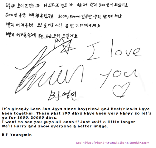 Translations: 兔紙 | BoyfriendTW.com (Kor-Chi) + honeyrinayu | weloveBoyfriend.wordpress.com (Chi-Eng) + jaein @boyfriend-translations
