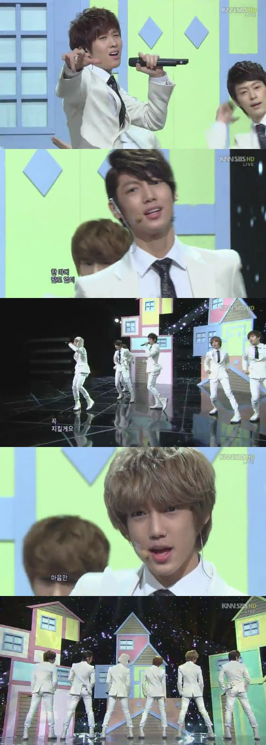 이날 보이프렌드는 위 아래 흰색 정장을 입고 성숙한 매력을 뽐냈다. 얼굴은 아직 앳된 모습이었지만 두 번째 싱글 음반 활동 당시보다 한층 남자다운 모습이었다.