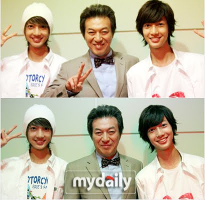 As soon as they debuted, BOYFRIEND became the hottest idol group, ‘uljjang’ twins Youngmin and Kwangmin(16) snaps a friendly picture with actor Kim Kabsu and it’s receiving lots of attention.