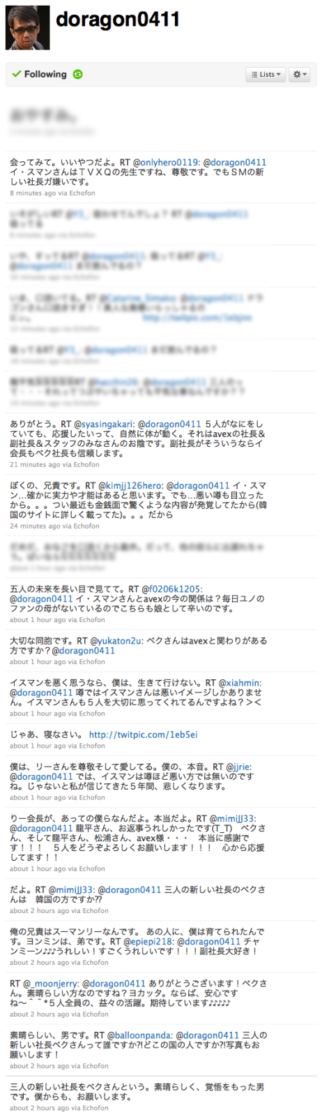 (Retweet from someone) Thank you very much! Baek-san. He’s a wonderful man, isn’t he? That’s good. If that’s so, I’m relieved~ ^^* I’m anticipating for the 5 of them to have more activities ?????