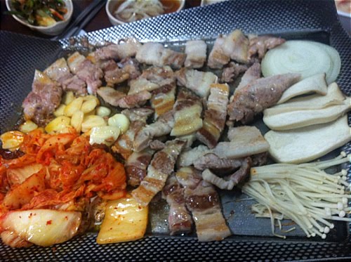 *samgyeopsal is a grilled marinated pork meat in Korea.