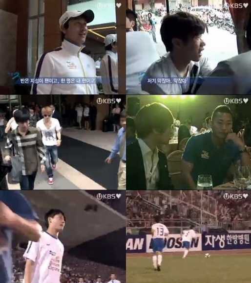 When Park Ji Sung came out to board the bus, loud screams by fans could be heard, and the screams became louder when JYJ’s Kim Jaejoong and Kim Junsu boarded the bus. A great commotion by fans were made when Kim Jaejoong sat beside Jung Dae Sae and started chatting with him.