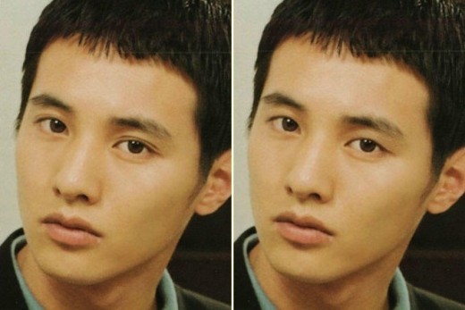 A netizen photoshopped a photo of Won Bin and removed his double eye lids and compared the before and after photo of the actor. "Double Eye Lids" is a symbol of an exotic feature in South Korea since most Korean's does not have double eye lids.