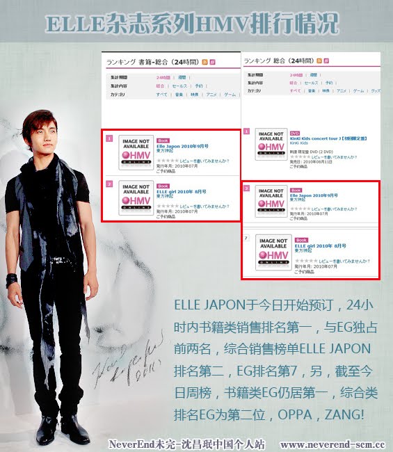 Pre-order for ELLE JAPON starts today, within 24 hours, the book sales becomes #1, with EG taking top 2 spots.