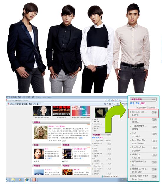 Korean boy band F. CUZ 's new song "Midnight Sun" ranked first on a daily Taiwanese music chart over the weekend