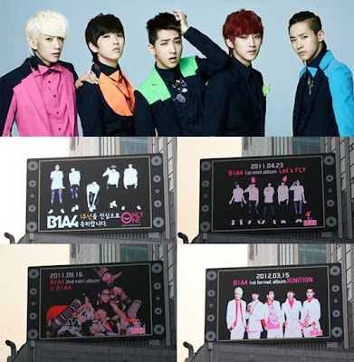 To commemorate the group’s one year anniversary, BANA (B1A4’s official fan club) set up special electronic billboard displays around downtown Seoul to congratulate and advertise the group.