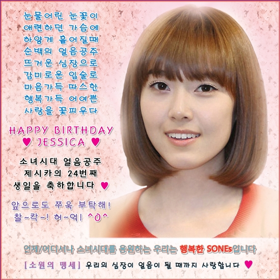 In celebration of her 23rd birthday, (Editor’s note: Jessica is 23 according to her Western age and 24 according to her Korean age) fans of Girls’ Generation gave Jessica a very special gift by placing an advertisement in a newspaper.