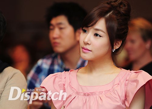 Most of all, Girls' Generation's Tiffany showed off her fluent English skills and her doll-like features. Tiffany, who wore a pink mini dress to flaunt her long legs, drew the attention of the many present European reporters with her fairy-like appearance.