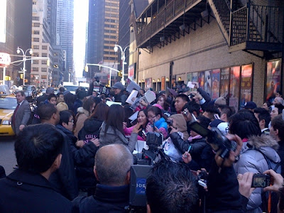 At roughly 1PM, before heading into the Ed Sullivan Theater to film their performance of “The Boys” for “The Late Show with David Letterman”, Girls’ Generation took time from their busy schedule to give autographs for several lucky fans. Many fans had waited several hours to show their support for Girls’ Generation. “The Late Show” will air tonight at 11:35PM Eastern Standard Time, or 1:30PM Korean Standard Time. You can check out videos from the brief autograph session and a teaser of Girls’ Generation’s appearance on “The Late Show” below.