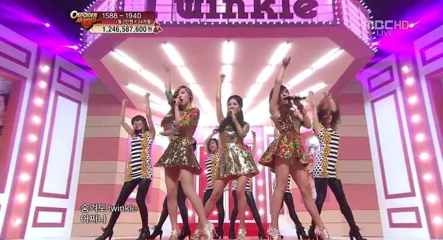 Taeyeon, Tiffany, and Seohyun made their comeback as Girls’ Generation – TTS on the May 5th episode of MBC’s “Show! Music Core”. They first performed the R&B song, “Love Sick”, from their mini-album, “Twinkle”, and wowed fans with an amazing vocal performance. Dressed in colorful gold outfits on a set that resembled a Broadway theater, the three members then took the stage to perform the title song, “Twinkle”, showing off their funky sound and soaring ad-libs.