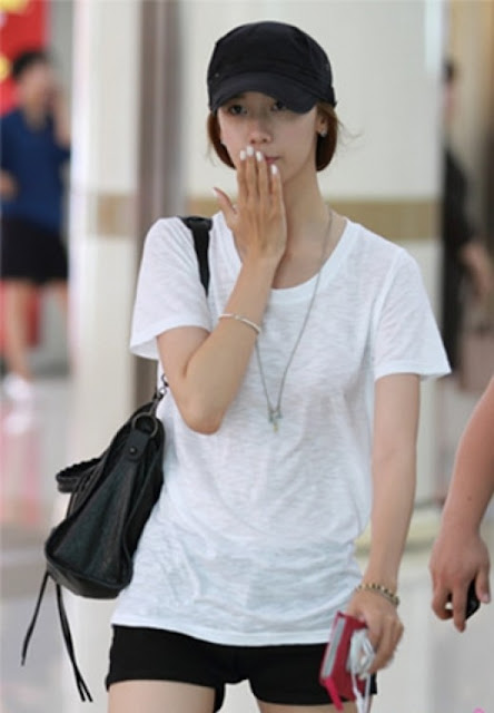 On June 25th, a photo titled “YoonA’s airport fashion” was uploaded on an online community board. The photo shows the Girls’ Generation member at Incheon airport in a plain white T-shirt, short pants and a hat.