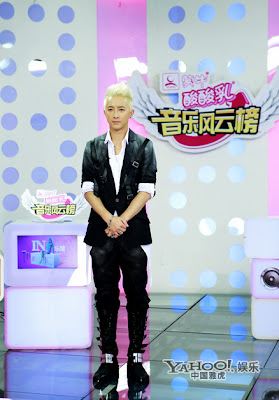 Han Geng, who is releasing his second solo album after a lapse of two years, visited the “Mengniu Yoghurt Music Billboard Charts” the other day in order to film the countdown promo video for his new album, and challenged the role of the emcee which he isn’t very good at, introducing the five title tracks from his new album. According to reports, Han Geng will hold his second concert at the Wukesong Stadium on 28th July and release his second solo album on the 29th, thereby kick-starting Han Geng’s 2012 music year.
