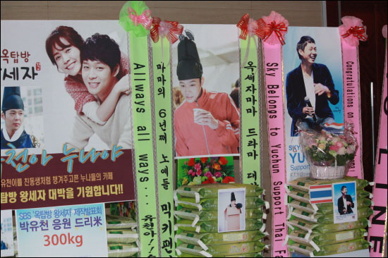 The press conference hall of SBS’s new Wednesday-Thursday drama “the Rooftop Prince” was packed with amazing number of reporters, fans not only from Korea but also from Japan, and ‘Rice wreath’ donated by fans even before one hour.