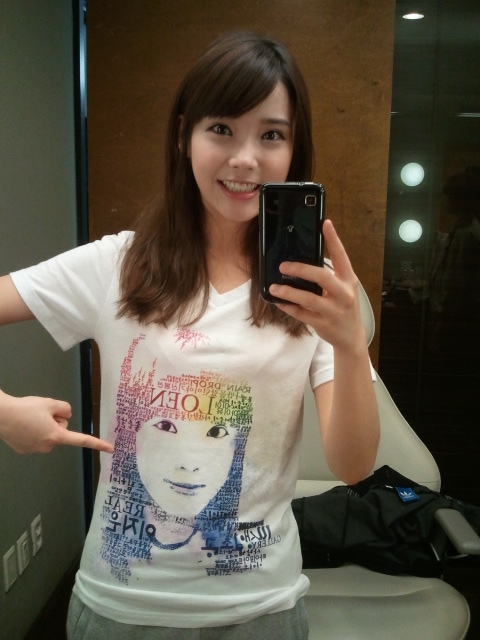 The idol updated her me2day account, saying, “Tadaa! I really wore this when I went to film today.” In the attached picture, IU took a proof shot of the t-shirt she received as a gift from fans. This gift was especially special to her because it was directly handmade by a fan.