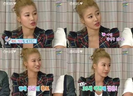 On the show that day, HwangBo was asked “Do you still not have any plans to get married?” and she said, “Honestly, even though I wish to, but I don’t have the interests yet.” And when asked if she has a boyfriend, she answered, “I am not seeing anyone now. But I hope not to cross the age of 35 to get married.” She also added, “I like a man who is understanding.”
