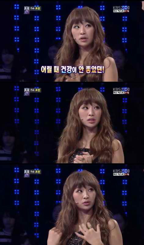 On the 8 May episode of KBS 2TV's '1 vs 100', SISTAR's Hyorin revealed that she was not healthy in her childhood.