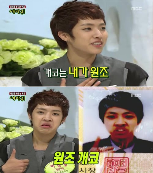 On the July 31st episode of MBC's 'Quiz to Change the World', he stated that he would "put out a challenge to JoKwon with his expression acting". He continued, "I've been watching 'Quiz to Change the World' often, and I saw that someone imitated a baboon. But I'm the original baboon", revealing his unique ID card picture. To this, the MCs asked if he could imitate the same expression, and Lee SungYeol made everyone laugh by imitating his picture.