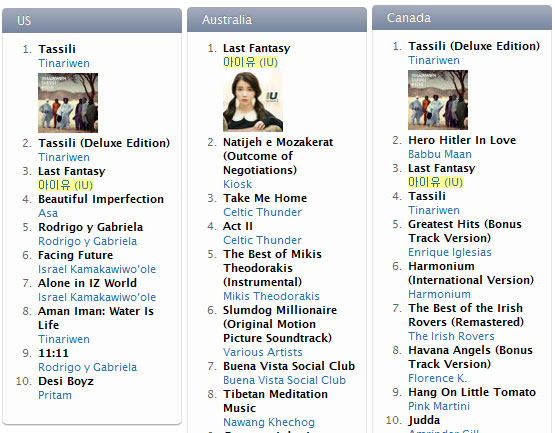 Through sales of IU's 2nd album 'Last Fantasy' on iTunes, IU was ranked 3rd on the iTunes World Album chart. Upon receiving inquiries about promoting in the US, LOEN replies, "The US? We're still going to start from Japan..."