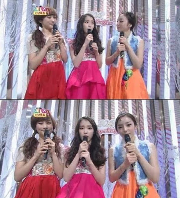The two then congratulated IU for “becoming an adult”. Nicole said “IU turned 20 years old”, in which IU dropped an adorable reply, teasing, "Now, instead of calling me Ah-Ee-Yoo, you will have to call me Uh-Reun-Yoo!". (In Korea, Ah-Ee means child/kid and Uh-Reun means adult)