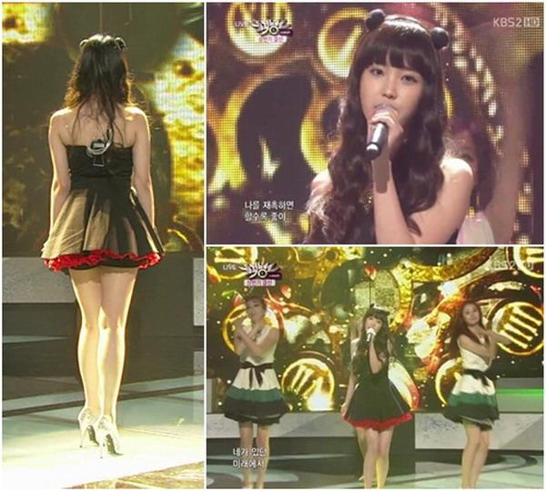 For her performance, IU wore a black mini dress, coupled with uniquely styled hairstyle. As she ended up her song, IU turned her back to the audience, revealing her stunning back view. Her tight fitting tube top dress clearly revealed her slim and sexy figure which surprised the viewers.