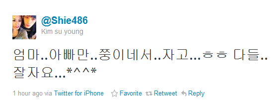 Mom and dad only… are going to sleep at Joongie’s house… Hehe Everyone… Good night .. *^^*